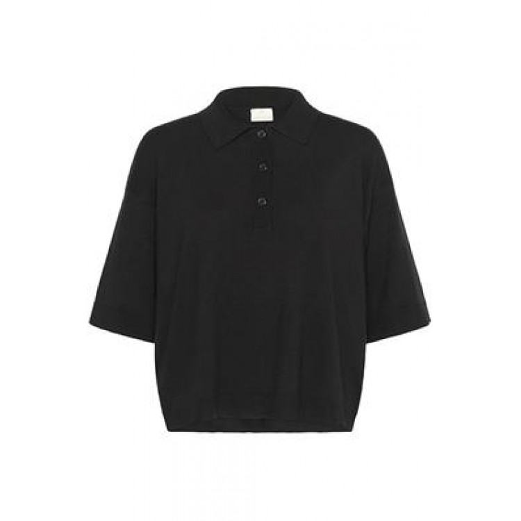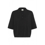 De polo heeft korte mouwen, valt recht en is wat korter.