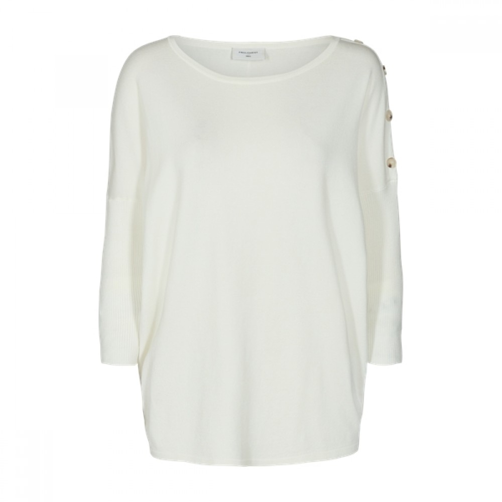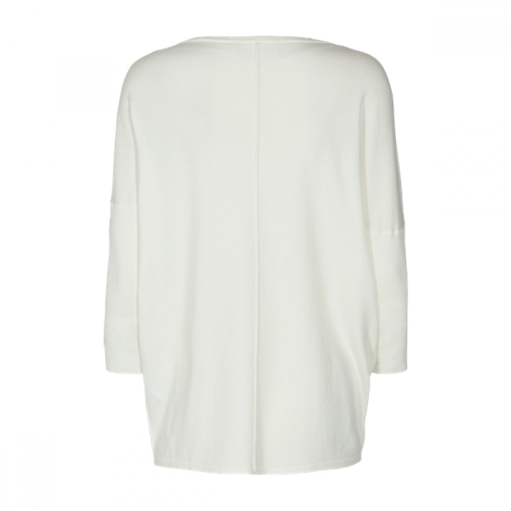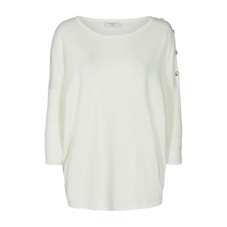 Fijne trui in offwhite met een ronde hals, en een leuke vlindermouw. Op de linkerschouder sier knoopjes