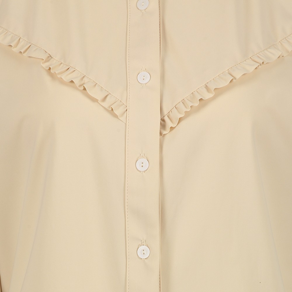 Mooi blousje met kort opstaand kraagje en klein stukje fruzzles aan de voorkant
