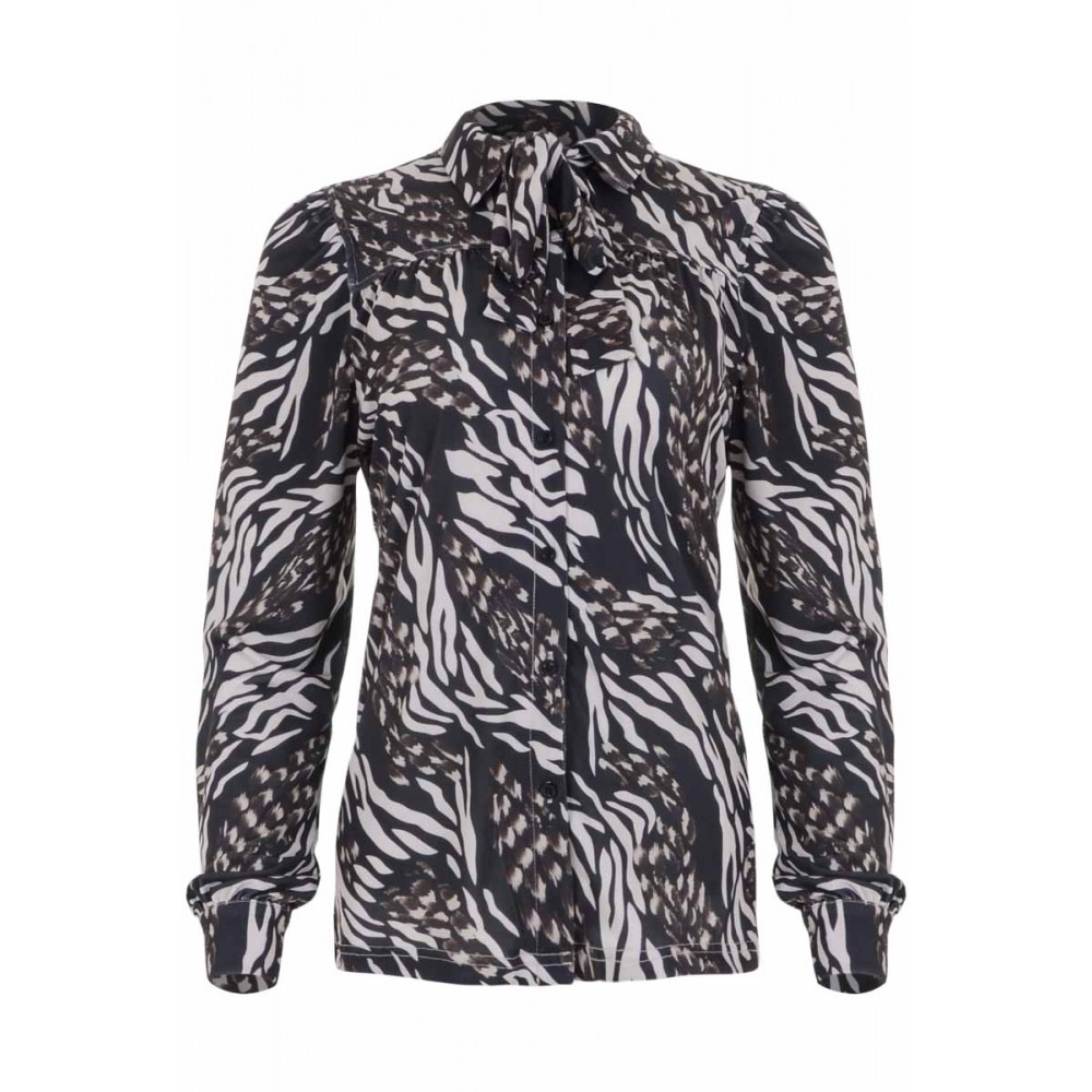 Fijne blouse van Maicazz met een mooie print in zwart - camel en beige
