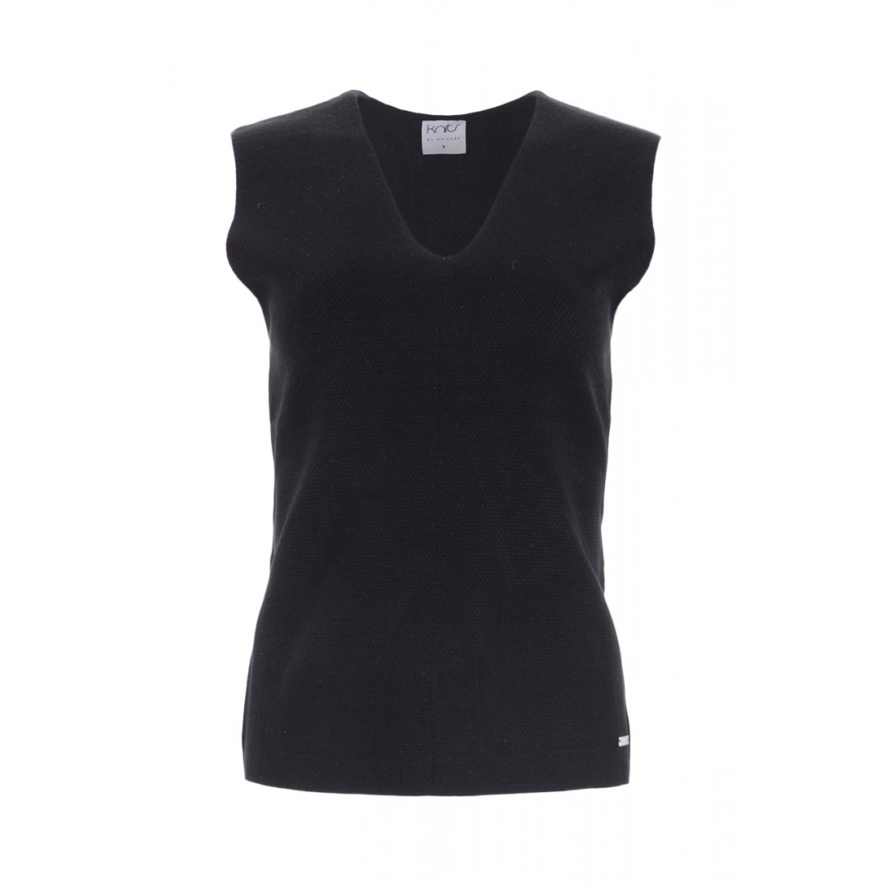 Mooie zwarte top met een V-hals en een kapmouwtje.
