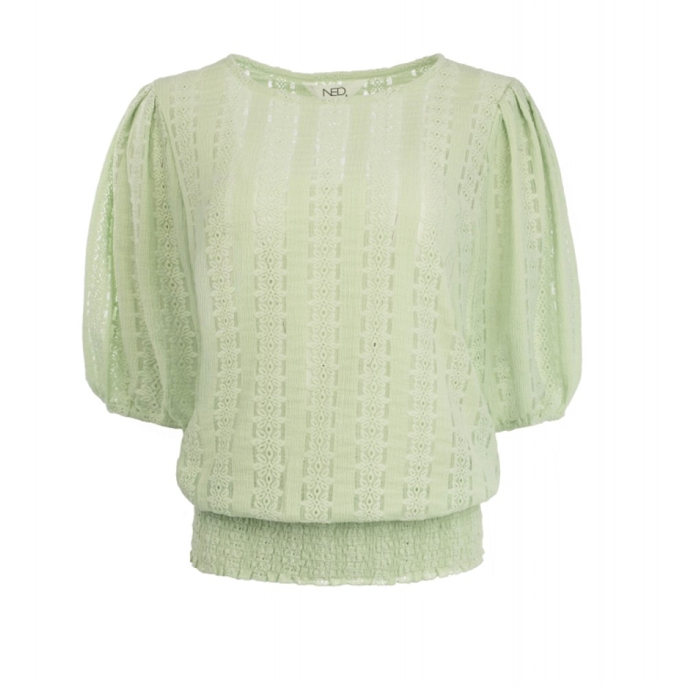 NED Amsterdam Top Morant1/2 SS Floral Ajour Tricot groen